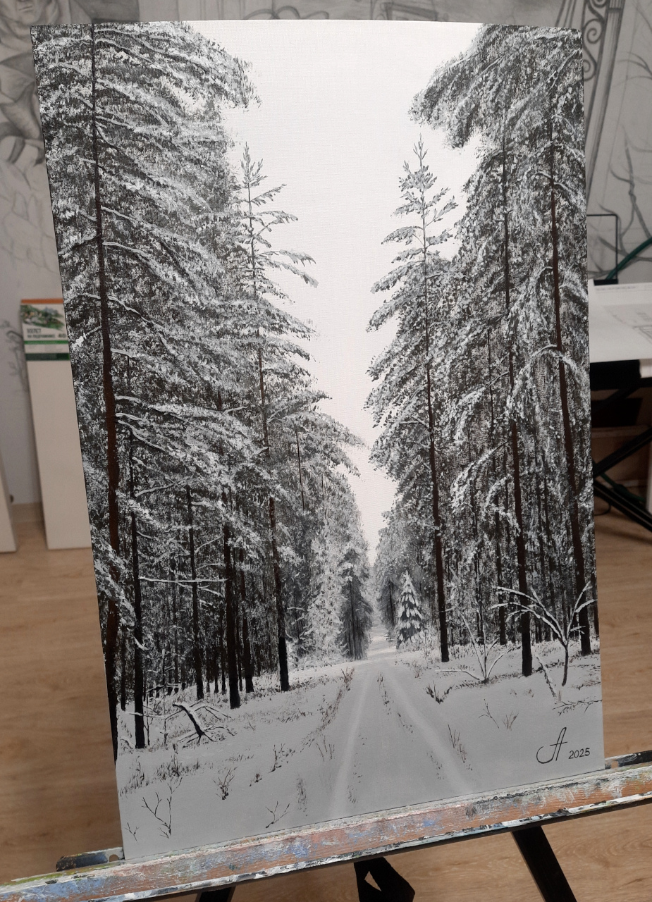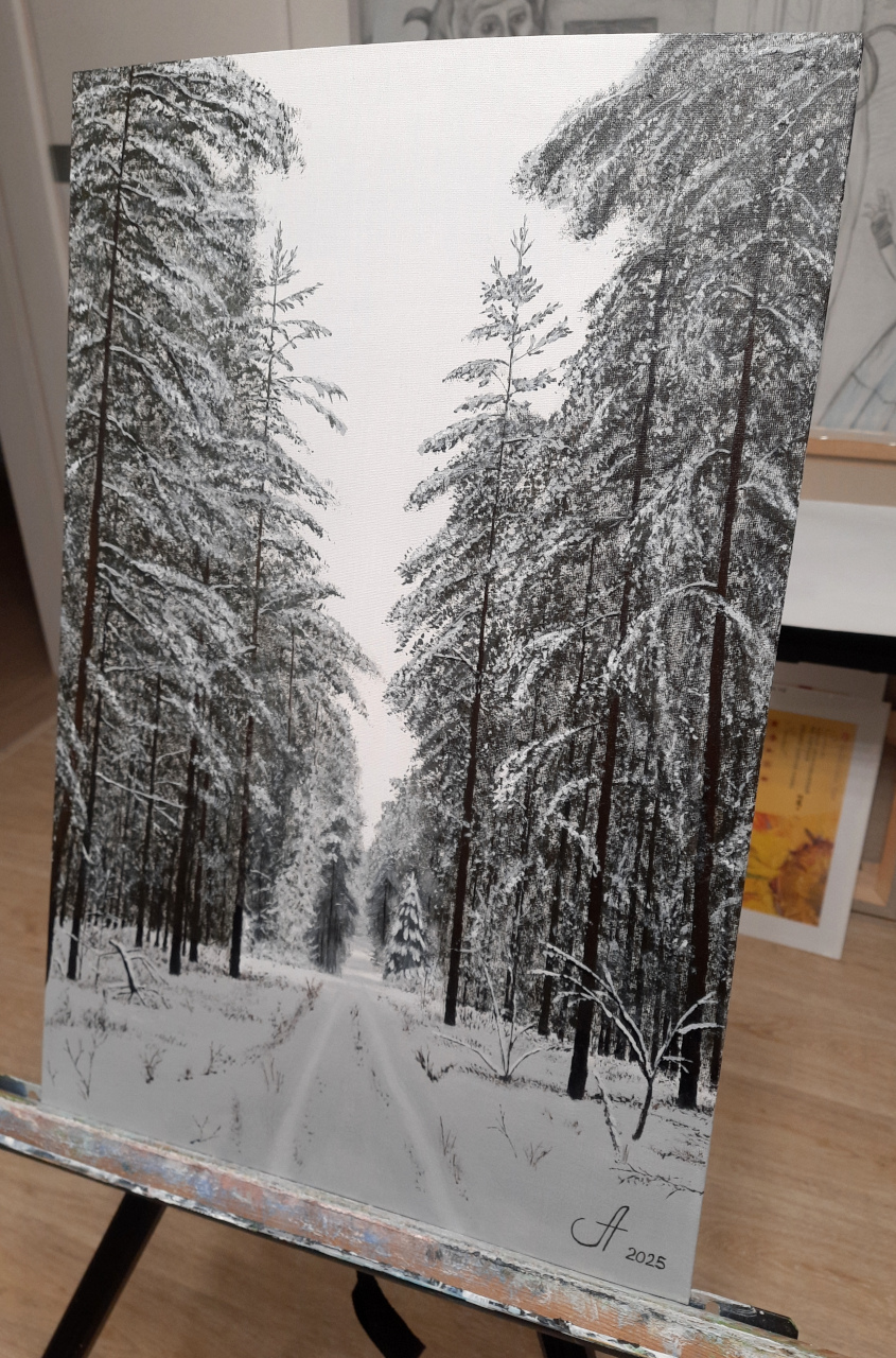 Увидел аналогичную картину, когда шел на лыжах, захотел реализовать. Ее аналог уже был, в том же формате и стиле. Рама.