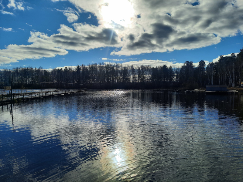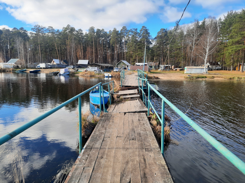 На берегу "пристань", мостки. Оттуда летом отплывают рыбаки и отдыхающие.