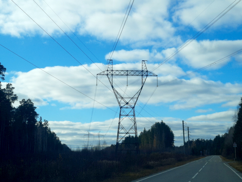 За Сарапулкой длинная восьмикилометровая прямая как струна дорога почти до самого водохранилища. Дорогу сопровождает ЛЭП. И пересекает еще более высоковольтная линия.